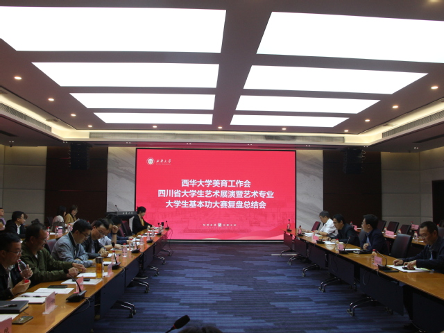 10月8日下午,学校在行政楼101会议室召开美育工作会--四川省大学生艺术展演暨艺术专业大学生基本功大赛复盘总结会。校党委副书记张力,美育教育委员会成员单位负责人、各学院分管学生工作副书记、团委工作负责人以及部分教师代表参会。会议由副校长费凌主持。