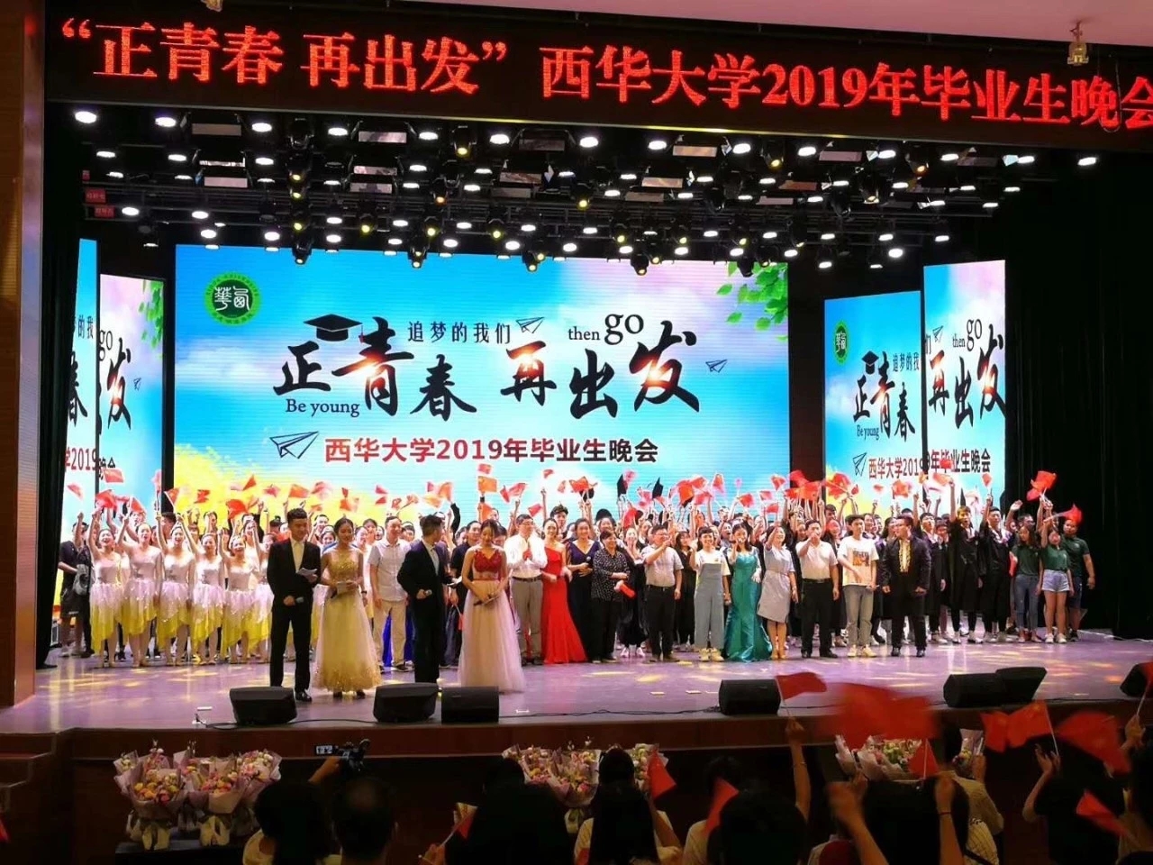 6月20日19:00,tyc5997太阳集团2019年“正青春,再出发”毕业晚会于七教大剧场举行,各级领导和许多优秀的教师悉数到场,为即将毕业的西华学子送上最诚挚的祝福。