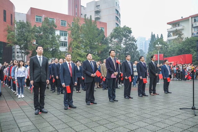 10月1日上午,我校在明德广场隆重举行“我和我的祖国”升旗仪式,并组织师生集中收看庆祝中华人民共和国成立70周年大会及国庆阅兵仪式直播并进行座谈会。校领导、机关及业务部门主要负责人、各学院党委(党总支)书记、院长和400余名师生代表相聚在鲜艳的五星红旗下,为祖国生日献上最美好的祝福。