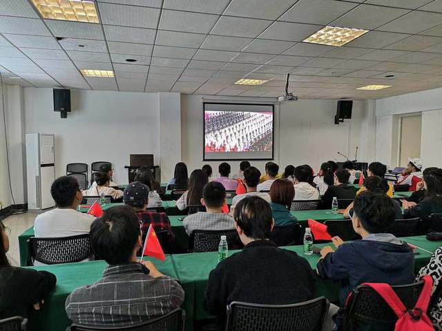 与此同时,校团委老师第一时间组织发动学生代表上午10:00于学生活动中心四楼会议室集中观看庆祝中华人民共和国成立70周年大会及国庆阅兵仪式直播并进行座谈会。观看过程中,各位师生代表认真听取了习近平同志在庆祝中华人民共和国成立70周年大会的重要讲话并真切地感受到了阅兵式和群众游行队伍的震撼,为我们伟大的祖国感到自豪,为我们伟大的祖国送上衷心祝福。