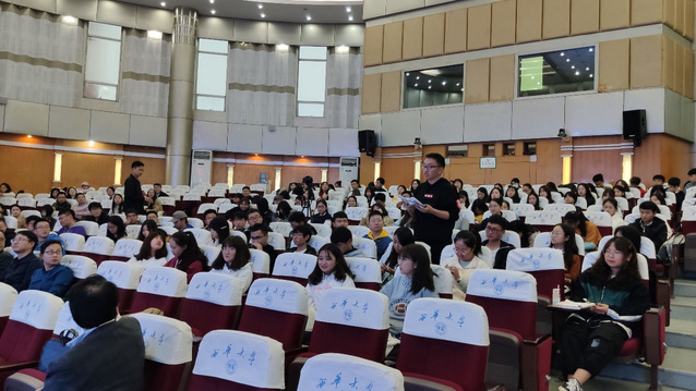 同学们正在专心听讲座