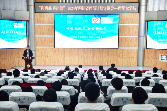2024年4月10日,我校在四教报告厅开展“青春就业大讲堂”——“西部计划”政策专场宣讲活动。活动邀请到四川省西部计划项目办高刚老师和“西部计划”志愿者,全校500余名师生通过线上线下参加了此次活动。