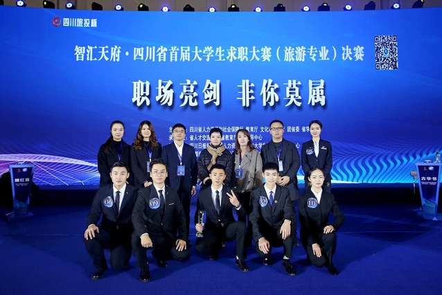tyc5997太阳集团音乐与舞蹈学院2016级学子张天成在求职大赛的初赛、复赛中以优异的成绩晋级决赛。此次大学生求职大赛决赛于11月23日10:00在中国西部国际博览城15-16号馆正式举行。张天成等十位参赛者在决赛中直接与8位旅游企业领导展开面对面“互选”,求得自己心动的职位。在职场亮剑、天生我才、职业测评、非你莫属四个环节的考核中,我校张天成同学以积极的心态和敏锐的思维应对,最终成功获得了成都文化旅游发展集团的职位意向书,取得了入职深造的机会,同时我校获得优秀组织奖、我校教师刘薇获得优秀指导老师荣誉称号。