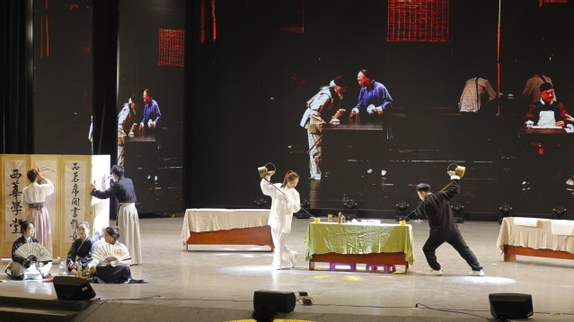 在万众期待中出场的木芽声剧社,一曲激情高亢的《这盛世如你所愿》配音大秀将全场气氛推向高潮,配音秀中的每一个场景都阐述着中华儿女的爱国之情;音乐协会豪迈的《沧海一声笑》诉说着中国人的武侠梦;由苏玉鹏、姚林道联合校舞蹈队带来的节目《笑傲江湖》为在场观众展示了川剧文化瑰宝——变脸,演员与观众亲切互动,使得观众能近距离感受变脸艺术的精绝。西华太极风、九鼎武术协会和跆拳道协会阳刚联合出品的《武林风云》融合了跆拳道、中华传统武术、双截棍、太极等武艺文化,刚柔并济的武艺表演展示了别样的力量之美。魔术协会趣味神秘的魔术表演——《命运》,魔术师以惊险刺激的“钢钉穿体”表演及温柔玄妙的“前世今生”表演赢得全场掌声,作为压轴出场的服章之华汉服社,情景剧表演《戎华》为晚会添上浓墨重彩的一笔,令人记忆深刻。