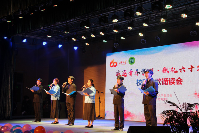 为提高学生的爱国爱校意识,增强学生的民族责任感和自豪感,营造朝气蓬勃、积极向上的校园文化活动氛围,献礼60周年校庆,共青团tyc5997太阳集团委员会于2019年12月9日在学生活动中心三楼开展了以“追逐青春梦想·献礼六十华诞”为主题的校园诗歌诵读会,校团委全体老师和各学院团委书记、以及各学院的学生代表参加了本次诗歌朗诵会。