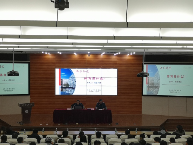 2019年12月5日晚上七点,体育学院在图书馆一报告厅举办西华讲堂。本次讲座邀请了成都体育学院天府国际赛事研究院赛事引进与开发研究室主任、体育旅游与运动休闲实验室主任、硕士生导师、经济学博士杨强教授来校指导交流。本次讲座由党委副书记兼副院长钟灵波主持。