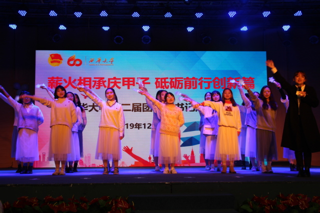 在嘹亮庄严的团歌声缓缓落下之际,团支部书记的答辩也正式开始。十位参赛的团支部书记依次上台选取题号进行知识竞答,各位团支书实力相当,回答问题不仅快速准确,且从容不迫。知识考核完毕过后则迎来了倍受关注的环节——团支书风采展示。团支书们为我们带来了诗朗诵、演讲、歌舞等多个类型的精彩表演,尽显个人风采和班级风貌。