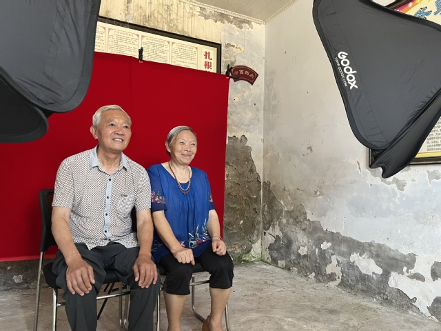 “我和老伴结婚这么多年,这还是第一次拍纪念照,拍的非常好,感谢您们”,何金容老人在拿到相框时激动不已的赞美到。架好相机、支起幕布、安上补光灯,废弃的医务室顷刻间就布置成为一间摄影工作室。美术与设计学院实践队员在指导教师李恒全的带领下,通过集中拍摄和上门拍摄的方式,为150余户村民拍摄个人生活照、温馨全家福照、晚年结婚照等,并打印塑封、相框装裱后赠送给当地居民,用镜头定格记录美好的时光。