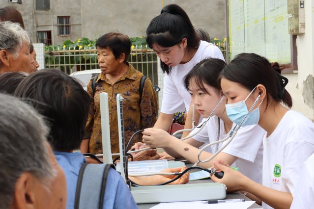 为弘扬尊老爱幼的传统美德,用实际行动关爱老幼群体,大健康管理学院实践队员在村委会开展公益诊疗和留守儿童心理健康关爱服务,为前来咨询的村民测量血压、监测心率,详细询问村民的身体状况、既往病史和生活习惯,给予合理的饮食和生活建议,倡导健康的生活方式。同时,围绕人际交往、情绪调节、认知学习、生命教育等方面,通过心理健康课与团体辅导活动,与村上的留守儿童深入交流,帮助孩子们树立积极的心理品质。应急管理学院实践队员在当地中学现场演示应急包扎、心肺复苏以及海姆利克急救法等教学内容,提升居民的急救技能。