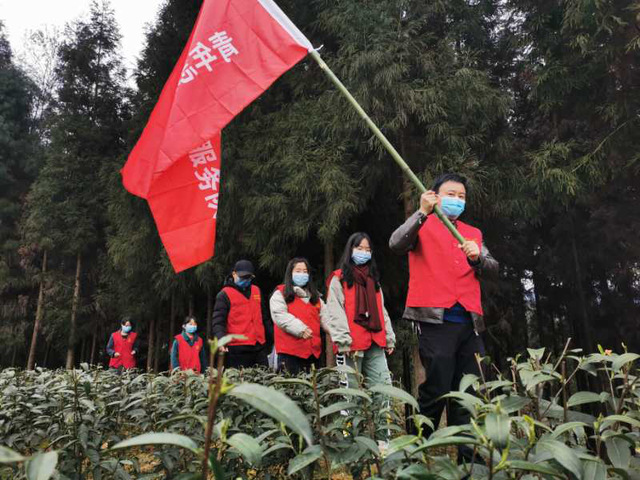 图为 帮助孤寡老人采摘春茶