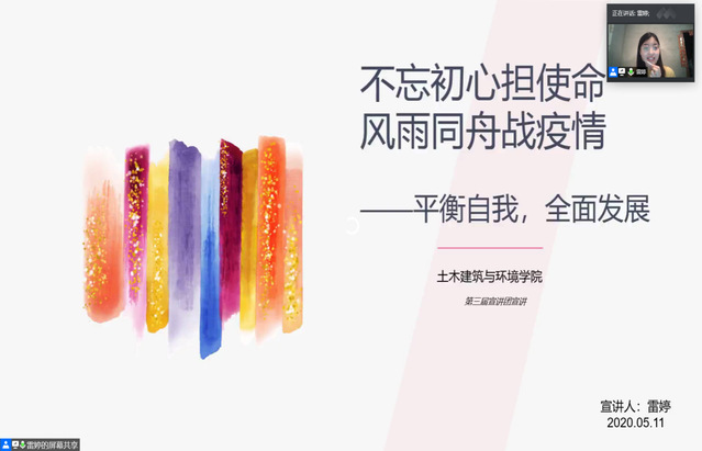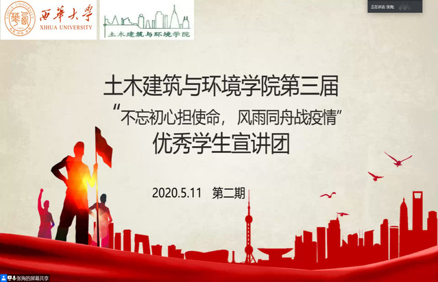 为积极响应学院号召,进一步发挥榜样引领作用,鼓励学生爱国、励志、求真、力行,土木建筑与环境学院第三届“不忘初心担使命,风雨同舟战疫情”优秀学生宣讲团于5月11日开展第二场线上宣讲。本次学生宣讲人为2016级工程管理3班雷婷和2018级建筑学1班杨宗杰。学院团委副书记上官晴天老师出席会议,学院团委学生会成员代表,2018级、2019级学生代表等200余人参加本次会议。
