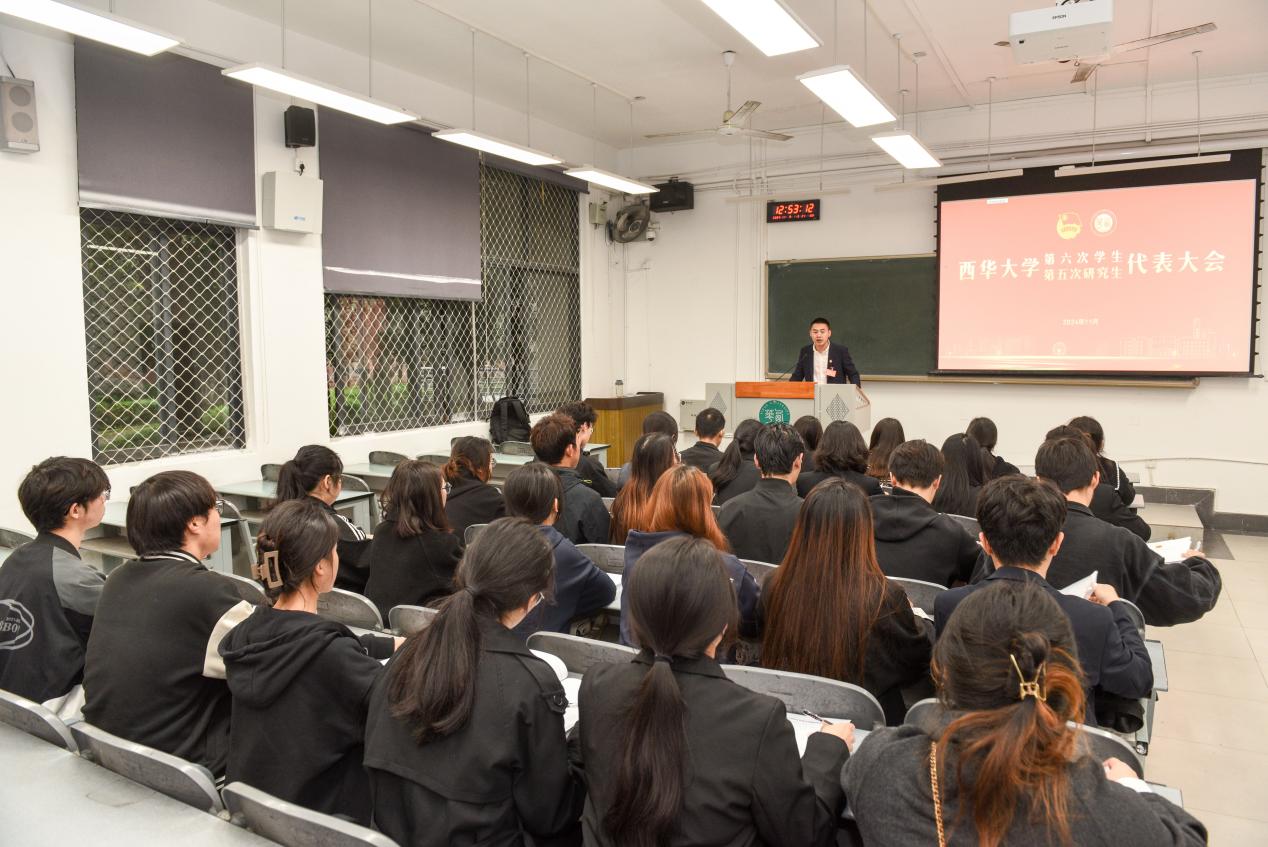 2024年11月9日,tyc5997太阳集团第六次学生代表大会、第五次研究生代表大会在艺术大楼大剧场成功举行。学校党委常委、副校长费凌、党委常委、宣传部部长王莉、成都市学联执行主席唐珩蓝、学校党委学生工作部部长罗世韡、教务处处长蒋珍菊、研究生院副院长苏文明、校团委书记石元鹏、校团委副书记王映玥,以及全校303名学生代表、98名研究生代表参会。成都市学联和30余所兄弟高校学生会组织对大会的胜利召开表示祝贺。