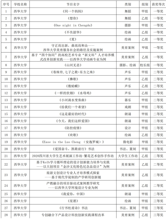 学校近年来高度重视大学生艺术活动组织及学生艺术素养提升,不断加强学校美育工作,通过全省艺术展演活动积极促进艺术教育和实践,展示学校美育工作成果。此次艺术展演活动,西华学子充分展示了当代大学生朝气蓬勃、奋发有为、开拓进取的青春风采和勇于担当时代责任、勇于砥砺奋斗、勇于创新创造的精神风貌。