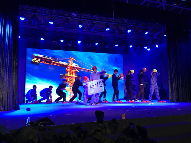 身为土木人当然要展现土木人的精神,新生男子舞蹈队表演的《走在建设的路上》将晚会推向了高潮,所有表演队员身着工程师服装,头戴安全帽,以舞蹈形式畅想工程师建设、发展的场景。此外,朗诵,原创歌曲,情景剧等节目形式赢得了现场观众的阵阵掌声。