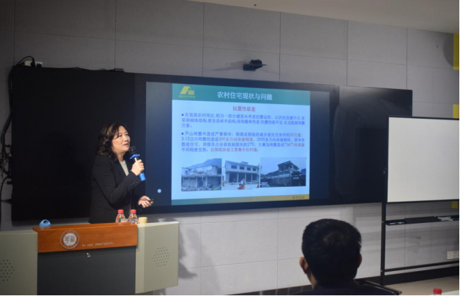 讲座中,熊教授从住宅体系的层面论述螺栓连接装配式混凝土的各方面性能特点,并用对比的方法体现出螺栓连接装配式混凝土的优势。她结合自己多年的工作和教学经验,用幽默风趣的方式向大家讲述了节点干式连接装配式混凝土结构快速安装、绿色环保等特点。同时,熊教授表示节点采用螺栓连接的装配式混凝土结构具有可拆卸和重复使用的特点,大大改变了现今的结构形式。