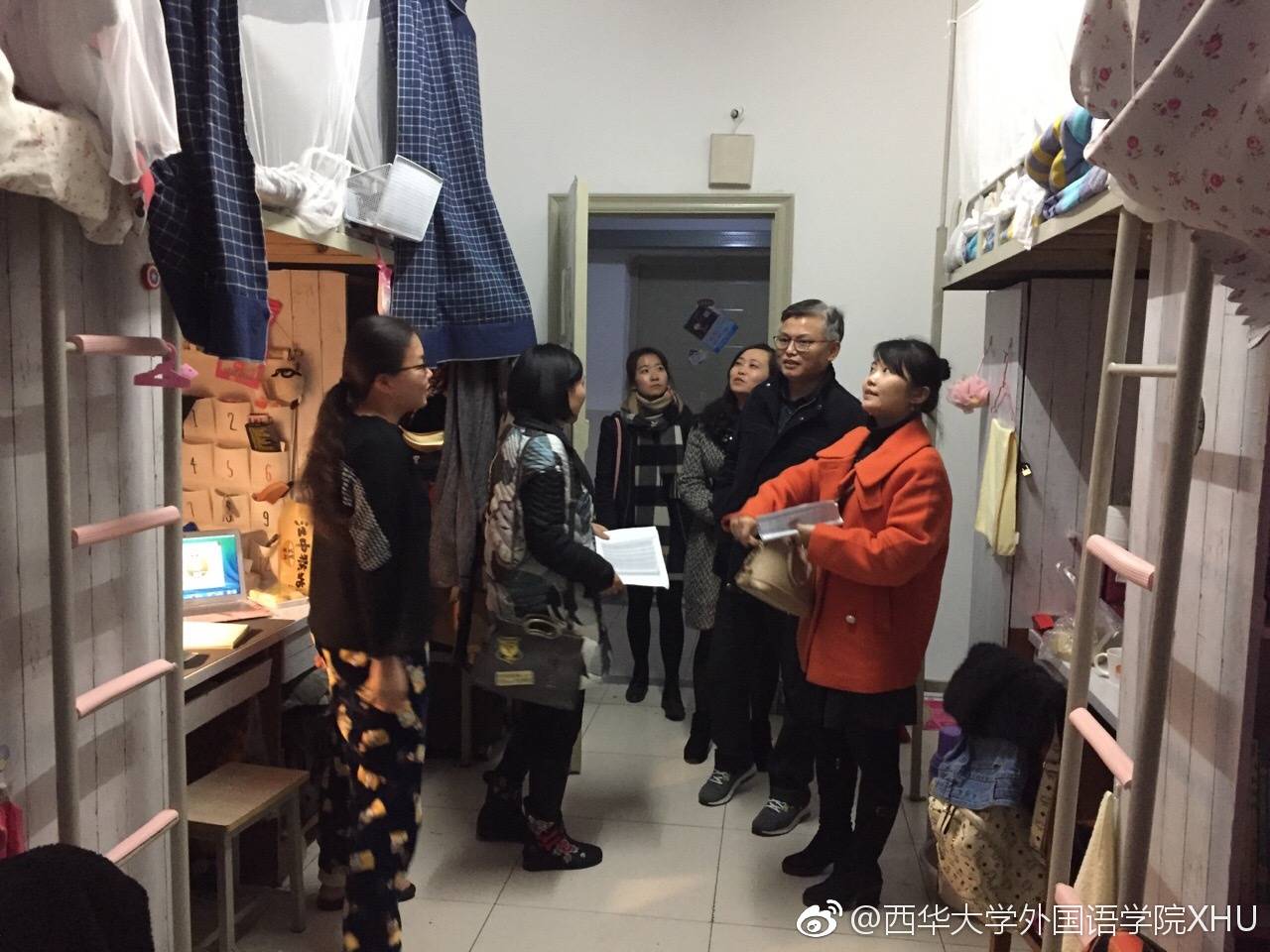 3月23日星期四晚,为检查宿舍的用电安全、卫生状况等,外国语学院分别在德馨苑、临江苑、锦地苑宿舍区进行了一次全面的查寝工作。查寝对象为包含研究生在内的大一到大四的全院学生。此次查寝工作由外国语学院党委书记朱军、全院辅导员老师带队,院学生会干部和干事协助工作。