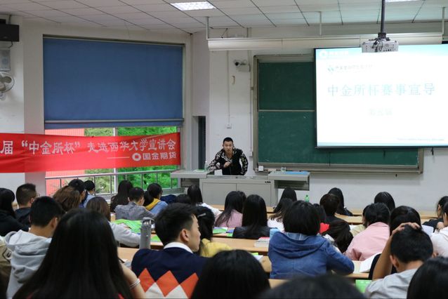 4月12日下午6:30第五届“中金所杯”走进tyc5997太阳集团宣讲会在4B301顺利举行。本次宣讲会由中国金融期货交易所与tyc5997太阳集团联合主办,在国金期货证券公司有20年以上期货交易经验的戴小红老师围绕“中金所杯”比赛进行了本次宣讲会。