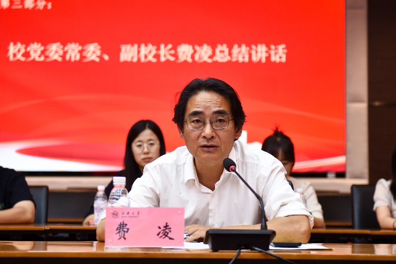座谈会最后,由校党委常委、副校长费凌总结讲话。费校长向全体与会人员交流了三点意见:一是要深刻领会习近平总书记重要回信精神和寄语青年重要讲话精神的丰富内涵,坚定新时代青年听党话、跟党走的政治自觉;二是要准确把握新时代青年工作的实践要求,筑牢共青团为党育人的使命担当;三是要奋力书写新时代青年的奋进答卷,争做中国式现代化建设的生力军。会议最后,费校长对与会学生代表发出殷切希望,希望作为学生干部新时代青年要以学字当先,在仰望星空的同时,一定要脚踏实地,最后才能实现伟大理想。