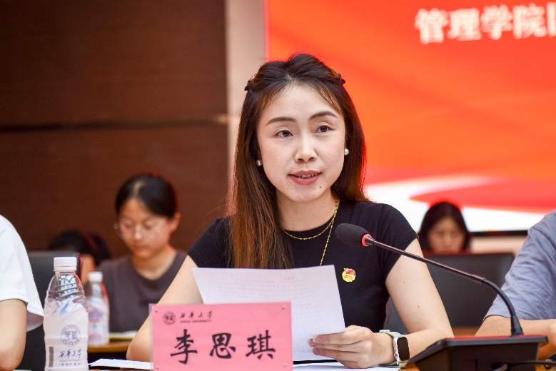 学院团委书记代表机械工程学院团委书记李钢、管理学院团委书记李思琪先后谈到,在深入学习了习近平总书记给谢依特小学戍边支教西部计划志愿者服务队队员重要回信精神和习近平总书记寄语青年重要讲话精神后,作为学院团委书记,应将此次讲话精神落实到实际行动之中,牢牢把握为党育人、积极推动学院“青年大学习”,做好青年工作,将“小我”融入到“大我”之中。