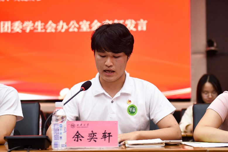 学院团书记、校级学生组织负责人、“青马工程”卓越班学员青年学生代表作交流发言。并纷纷表示将牢记嘱托,坚定理想信念,厚植家国情怀,练就过硬本领,发扬奋斗精神,用实际行动为中国式现代化挺膺担当。