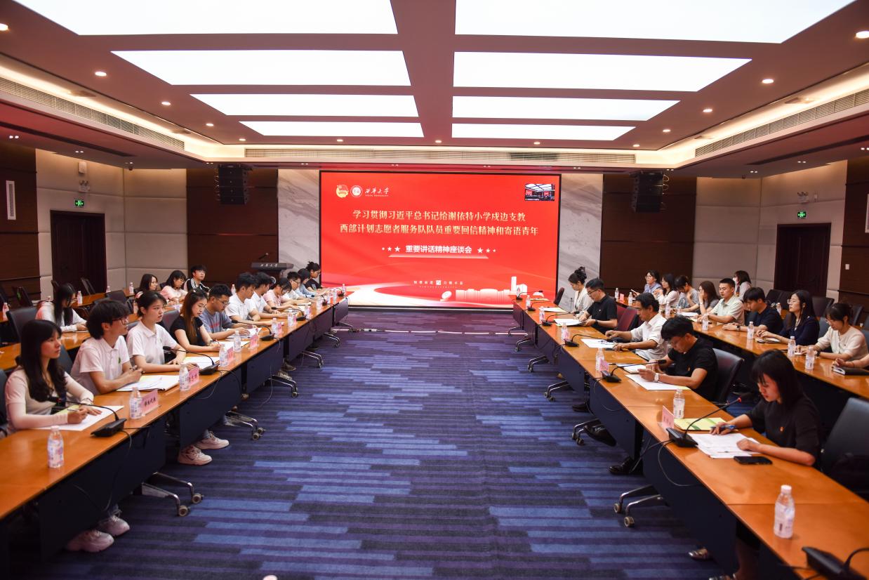 学校召开学习贯彻习近平总书记给谢依特小学戍边支教西部计划志愿者服务队队员重要回信精神和寄语青年重要讲话精神座谈会
