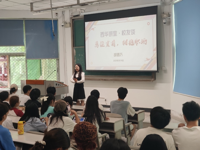 为充分发挥优秀校友的榜样引领作用,帮助在校学生明晰职业方向、提升就业竞争力, 5 10 日下午,理学院于 4A-102 4A-105 教室举办了两场别开生面的校友分享会。此次活动邀请到宜宾市翠屏区思坡镇中心学校教务副主任胡遇巧、崇州市三江中学物理教师何磊两位优秀校友,众多师生齐聚一堂,共同聆听这场知识与经验的盛宴。