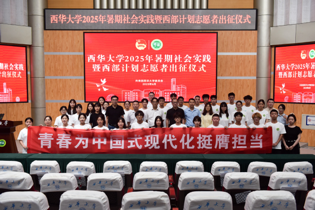 6月26日,2025年暑期社会实践暨西部计划志愿者出征仪式四教报告厅举行。党委常委、副校长费凌,党委学工部、党委研工部、校团委、教务处、招生与就业处、乡村振兴办、心理健康教育中心等职能部门负责人,各学院党委副书记、团委书记,暑期社会实践团和西部计划志愿者代表参加