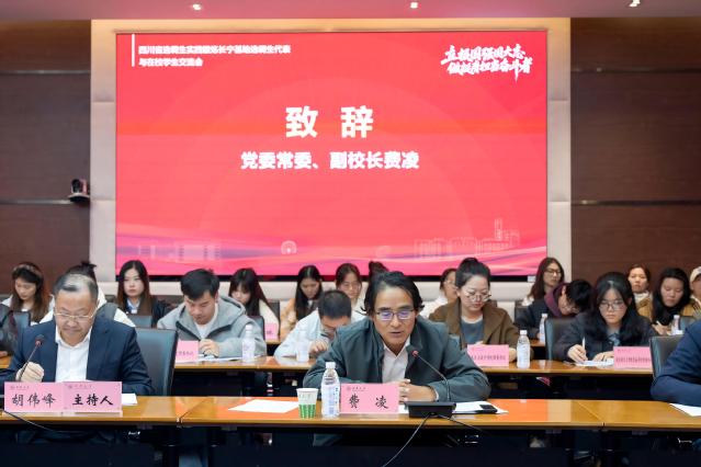 费凌代表学校对来校参加活动的中央和国家机关、四川省、宜宾市的选调生表示热烈欢迎他指出青年一代是国家发展最具活力、最具创造性的力量,是实现民族复兴伟业的“生力军”和“突击队”。他深情寄语广大青年要立下报效祖国、建设强国的远大志向,将个人发展的“小我”融入国家事业的“大我”,在实践中激发挺膺担当、奋发有为的精神状态,凝聚起开创未来的磅礴青春力量!