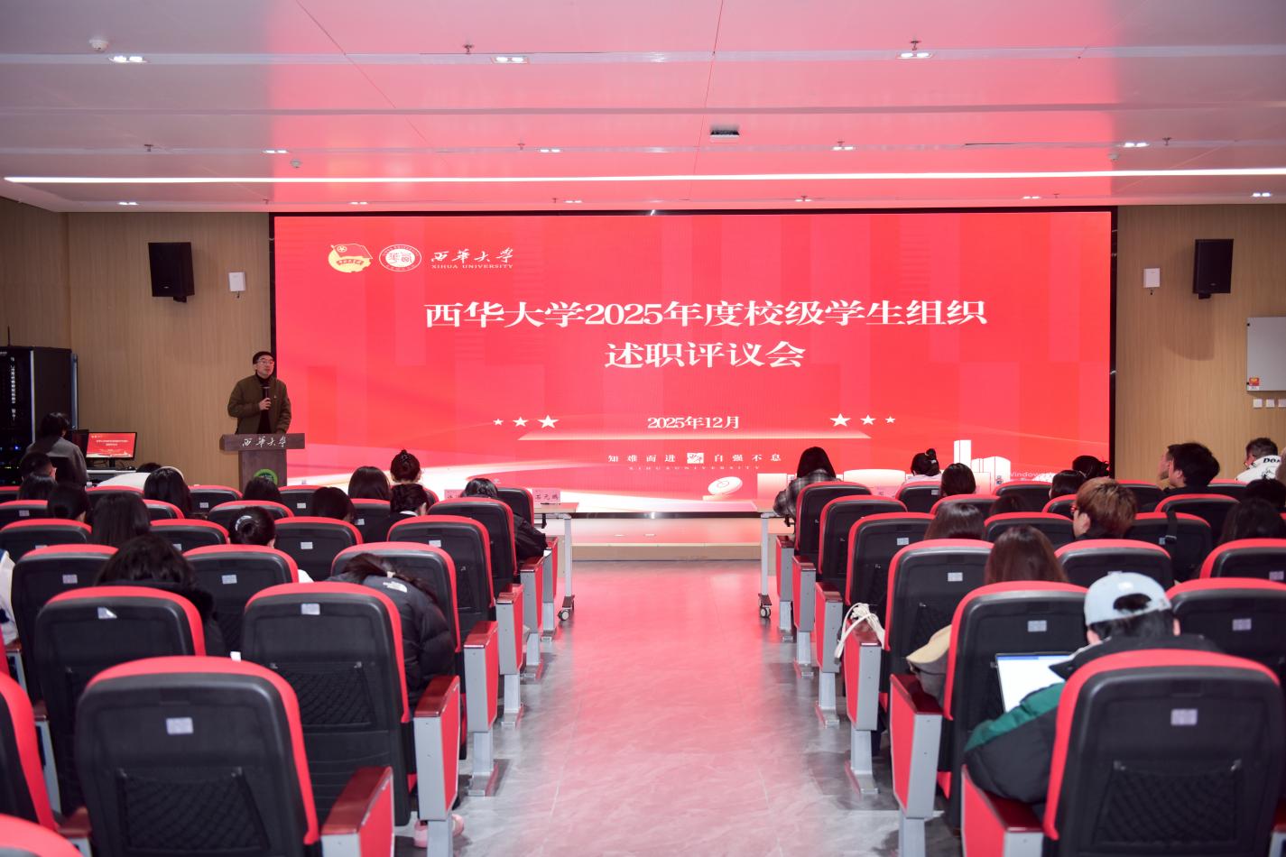 tyc5997太阳集团学生会、研究生会、校团委组织部、宣传部、文化艺术部、青年志愿服务总队、学生社团管理部、七个学生组织部门进行现场述职。各部门就2025年度的工作成果、部门自身建设进展、现存短板不足及对未来发展规划四个方面展开了汇报。由校团委全体老师,以及各学院团委书记和主席团代表组成评议团并进行现场评议。