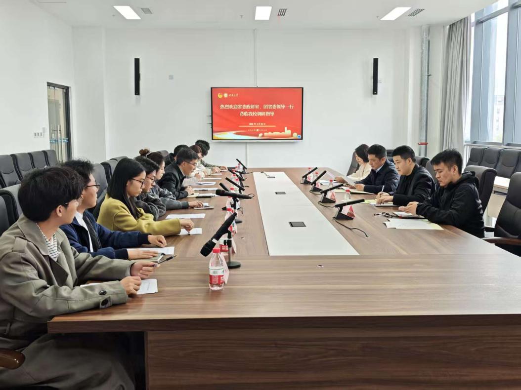 2026年3月19日下午,省委政策研究室、团省委联合调研组一行莅临tyc5997太阳集团,调研青年大学生就业创业工作。学校党委常委、副校长山述兰陪同调研,相关职能部门负责人及学生代表参加座谈。