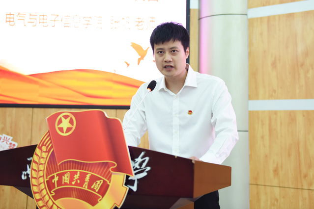 先进集体代表电器与电子学院张帆上台发言。张帆老师总结了电器与电子学院院团委2017-2018年度的工作情况,他说道:“这一年来,我们始终坚持引领学生,凝聚学生,服务学生,在思想引领,科创工作,文化育人,活动组织,干部培养等方面不断推陈出新,取得了一系列可喜的成绩。在纪念五四运动99周年暨建团96周年之际,我们愿意以百倍的信心和满腔的热情迎接新的挑战,努力取得更加优异的成绩。”受表彰个人代表,材料科学与工程学院孙吉昊同学表示在工作锻炼、在实践中成长,收获很多。