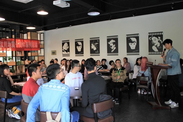 5月11日中午12点20分,汶川地震十周年分享会在tyc5997太阳集团创客咖啡厅举行,校团委副书记张雯欣老师、校团委吴莉萍老师、周雪莲老师、上官晴天学长和各学院学生代表共计30余人参加了此次分享会。