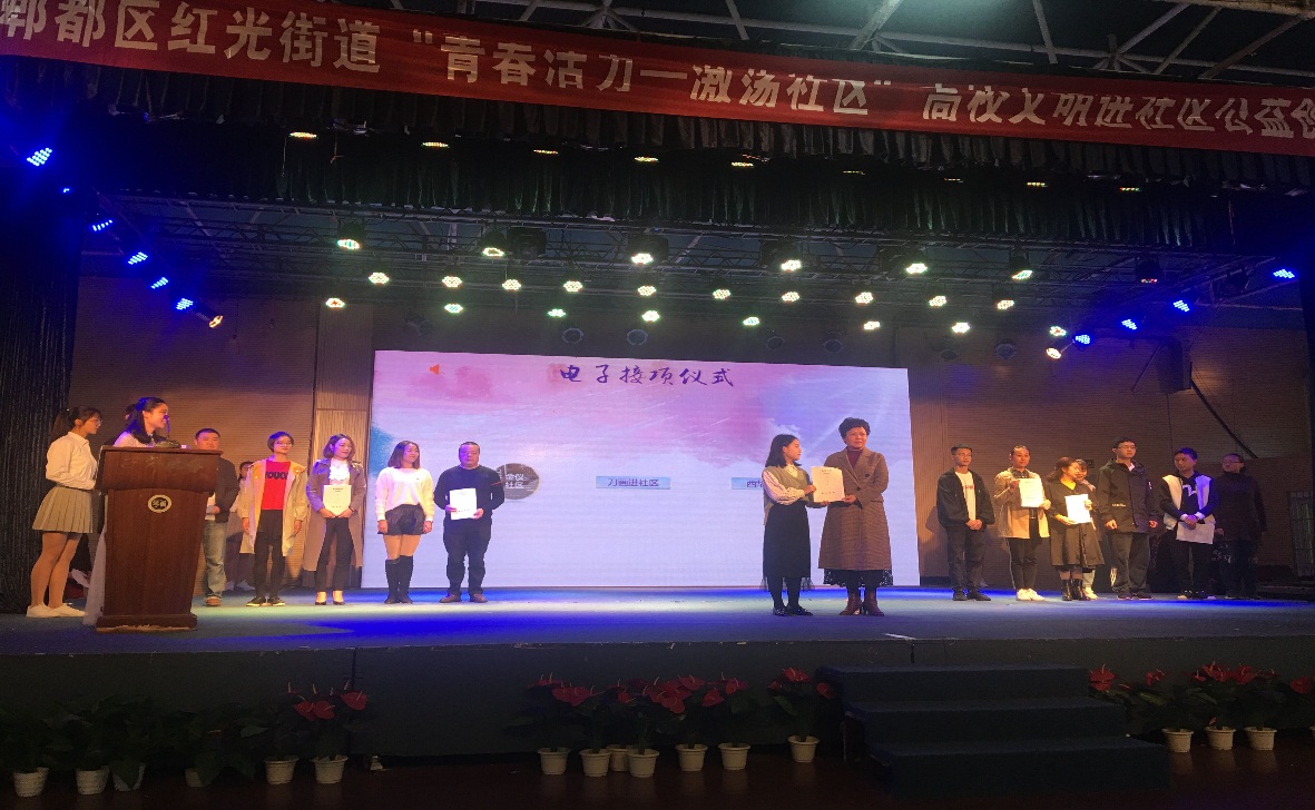 随后,举行了电子接项仪式,红光街道各社区从各高校代表手中接过活动项目。
