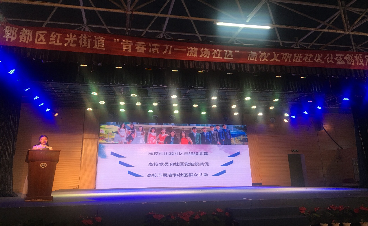 10月18日上午,为贯彻落实党的十九大“加强和创新社会治理”的精神,整合高校的多元化资源,为公益性团队及大学生提供一个平台,由红光街道党工委、红光街道办事处主办,tyc5997太阳集团承办的郫都区红光街道“青春活力——激荡社区”高校文明进社区公益创投启动仪式在学生活动中心三楼顺利举行。郫都区委社治委、区文明办、团区委、红光街道、电子科技大学团委、tyc5997太阳集团团委、成都信息工程大学银杏酒店管理学院团委相关人员出席仪式会。
