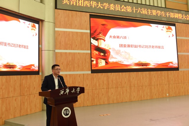 最后,校团委兼职副书记刘洪对新任学生干部提出了四点希望,希望广大学生干部要做一个有理想、敢担当、紧跟时代步伐、肯付出的人。