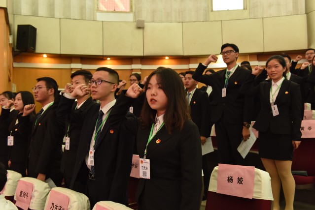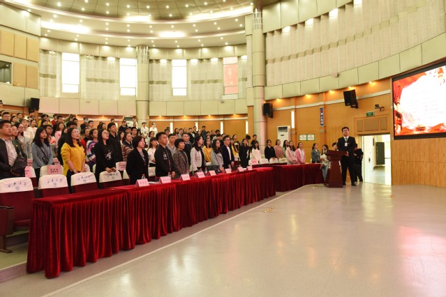 校团委挂职副书记蹇可佩宣读新任学生干部任命文件,团委老师为新一届学生干部颁发任命文件,并为他们佩戴工作证。校团委组织部部长刘雨婷作为新任学生干部代表发言,她在发言中说道:“作为学生干部一定要不忘初心、牢记使命、励志勤学、刻苦磨练,让青春绽放奋斗的光芒”。