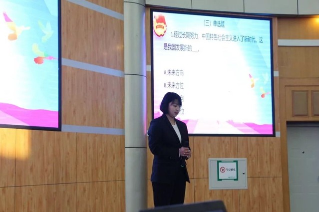 本次大赛分为知识竞答、即兴演讲、风采展示三个环节。知识竞答环节每套题内包含10道必答题、5道选答题,参赛选手依次选择题号作答。即兴演讲环节,根据抽到的题目做3分钟演讲,团支书们从国家层面、集体层面、个人层面出发,结合平时进行的青年大学习谈体会,号召同学们要争做“青年大学习”先锋,要扣好人生第一颗扣子,争做新时代向上向善好青年。风采展示环节,团支部书记和支部成员们通过朗诵、合唱、手语舞、弹唱、情景剧、小品等方式展示了支部积极向上的风采,人文学院2016级学前教育第二支部李紫滢团队带来的手语舞《没有什么不同》,管理学院2017级资产评估第一支部陈煊团队带来合唱的《最美的太阳》及外国语学院2017级英语第一支部李赵团队带来的《在灿烂阳光下》给现场观众留下了深刻印象。