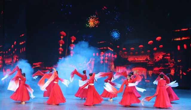致辞后,刘洪老师宣布晚会正式开始。中华武术源远流长,由西朔武社带来第一个表演《武术世家》,瞬间吸引了全场的目光;随后,茶文化协会与书法协会共同出演了《茶香盈盈染画屏》,茶艺与书画完行云流水完美契合,凤凰三点头,龙凤呈祥,鲤鱼翻身等茶技表达了对来宾的祝福,也展现了西华的好客之道;拼客舞蹈协会带来的《pink killer》则将观众们带入另一个世界,节奏感极强的舞蹈让现场的欢呼声根本停不下来,透过她们帅气的身影展现出的是青春的无限活力。接着,V公馆视觉动漫协会的《平安京之夜》选取的是热度很高的《阴阳师》作为题材,精致用心的服装和精彩的故事情节让观众止不住的为之点赞。
