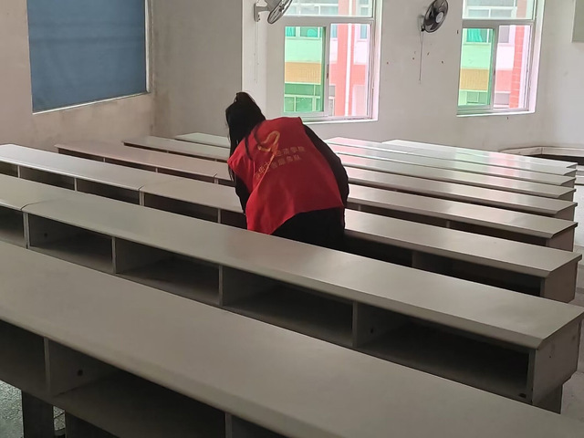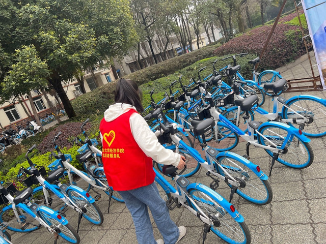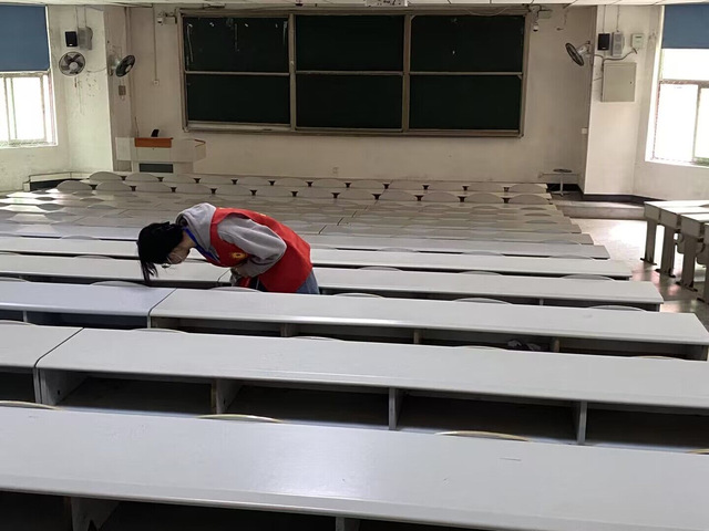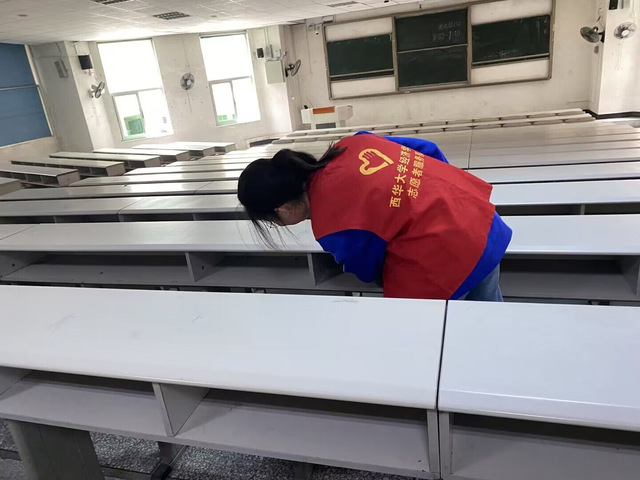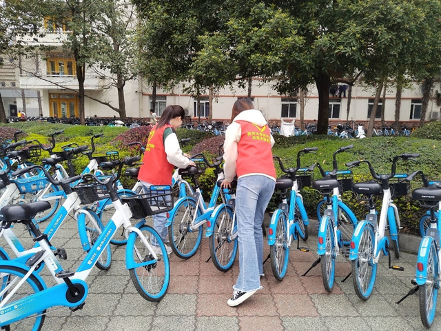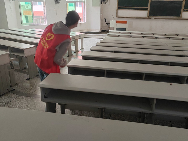 首先,青志服依据活动策划方案划分为四个行动小组,各司其职,分头行动。队员们身着红马甲,穿梭在校园各个角落。一小组负责规范校园共享单车的摆放;二小组巡视第四教学楼各教室,将课桌内残留垃圾清理干净;三小组为学校安保人员派送矿泉水,表达感谢与关怀;四小组积极派发预防甲流知识宣传海报。各个行动小组秉持认真负责的态度,严格落实各自工作任务,以个人的奉献善行将雷锋精神贯彻到细微之处。