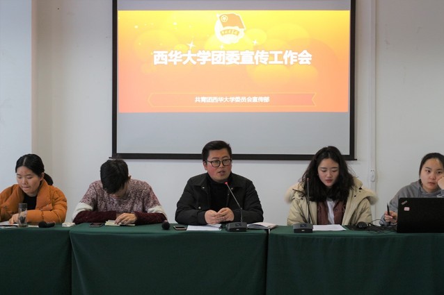 温超老师表明,共青团是一个朝气蓬勃的团体,是作为宣传工作的基石,宣传工作和每个西华学子都息息相关。随后他强调,学校的宣传工作需要依靠各个学院的力量,学校的宣传力度与学院的共同努力是密不可分的。因此,各学院应辅助学校团委宣传工作,提高我校影响力。除此之外,温超老师指出,为了规范各学院团学工作的推广以及宣传投稿,便于及时统计各单位投稿数量和质量,对各团委投稿流程进行了标准化,这不仅将影响各学院的年终总结,也减轻了团委宣传部的工作负担。最后,温超老师对各学院团委副书记提出要求,希望作为宣传的学生干部,应该管理好各种宣传手段,防止宣传的失误以及重大的宣传忌讳,尽量避免宣扬外国节日,应大力宣扬传统节日,营造良好的团学宣传氛围。