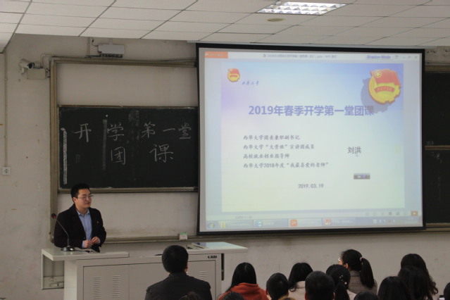 为深入贯彻习近平总书记关于青年工作的重要思想,全面贯彻党的十九大和团八大会议精神,落实“全团抓学校”的工作要求,推进团学改革再出发。3月19号12:00,校团委在4A104举行“开学第一堂团课”。校团委兼职副书记刘洪老师,校团委陈锦老师以及各学院学生代表参加了本次活动。