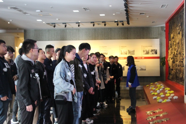 离开纪念馆前,同学们在馆中留下了珍贵的合影,这不仅仅是同学们在一起缅怀先烈的一段美好回忆,更是同学们接受了一次深刻的爱国主义教育的见证。最后,同学们有序排队进入陵园,来到革命烈士的墓碑前瞻仰革命烈士。