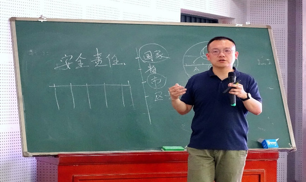 图为  丁鹏从安全责任体系建设方面为同学们讲解